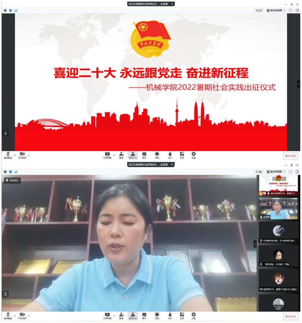 按照暑期实践项目化建设目标积极筹备,并在团中央、团省委、校团委的相关通知要求下不断完善,最终确立了党史学习教育、乡村振兴、环境保护、发展成就观察、优秀传统文化弘扬五个大类九支队伍,共有94名同学报名参加团队实践。第二项由许荣梅老师做出征动员讲话。她提出了“目标精准化、工作系统化、实施项目化、传播立体化”和“按需设项、据项组团、双向收益”的工作原则,并对指导老师和队员提出了时刻牢记安全、务实实践成效、加强宣传推广的三点希望和要求。至此,2022年暑期社会实践出征仪式圆满结束。