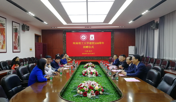 捐赠仪式上,张新民代表学校接受大旗控股集团(广东)有限公司十五万元发展基金的捐赠,并向该公司颁发了捐赠证书。