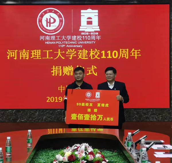 捐赠仪式上,夏绪虎向学校捐赠110万元,邹友峰代表校方接受捐赠,并向夏绪虎颁发捐赠证书;夏绪虎与张新民签署了捐赠协议。