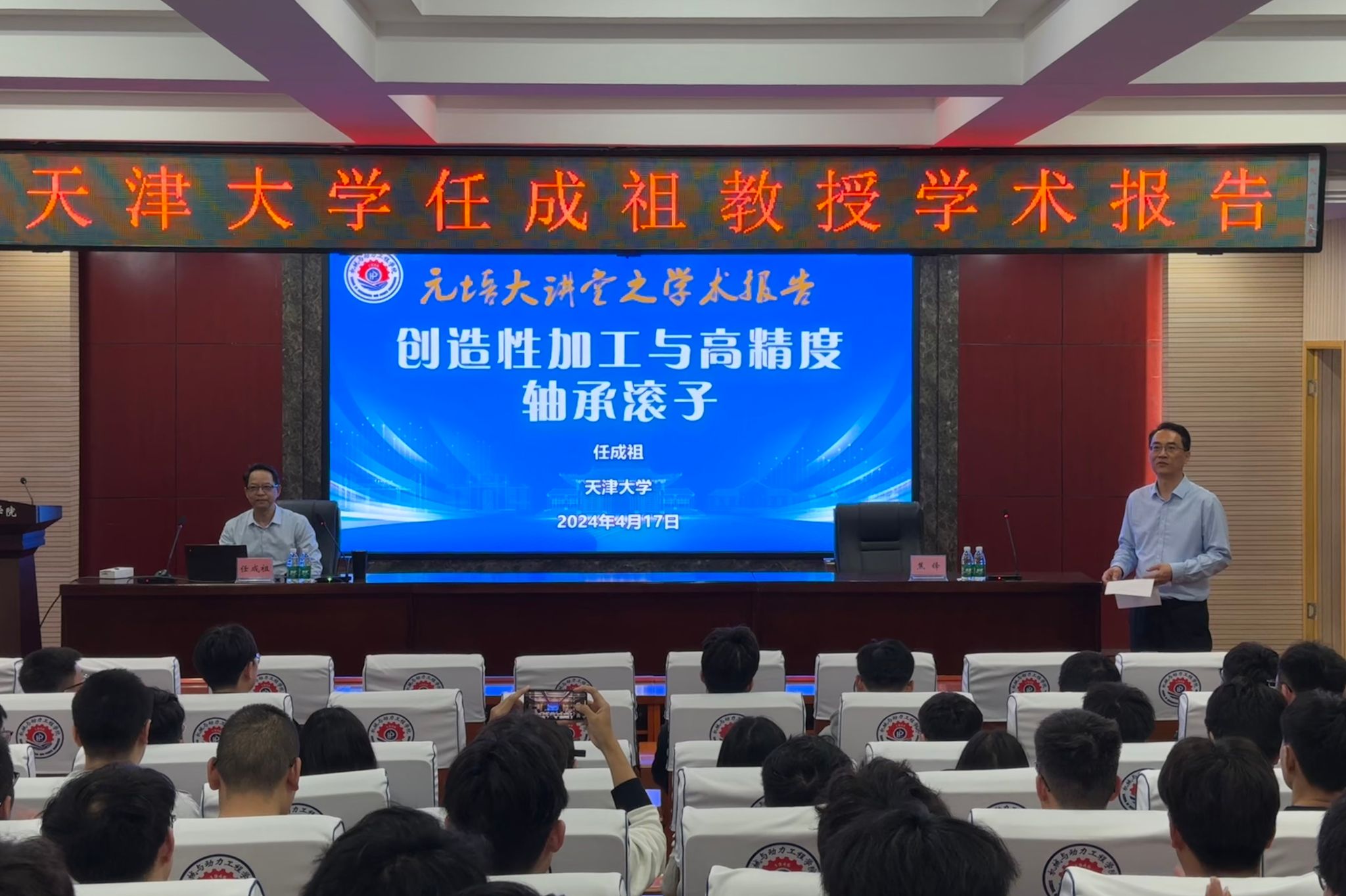 邀请,天津大学任成祖教授在学院205会议室作题为《创造性加工与高精度轴承滚子》的学术报告。报告会由学院副院长焦锋主持。