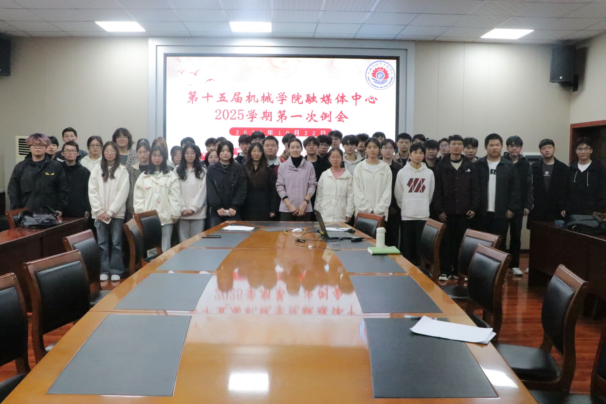 第十五届融媒体中心在院楼204会议室召开2025学年第一次全体例会。融媒体中心指导老师张亚琼及全体成员参加会议,会议由办公室部长沈猛主持。
