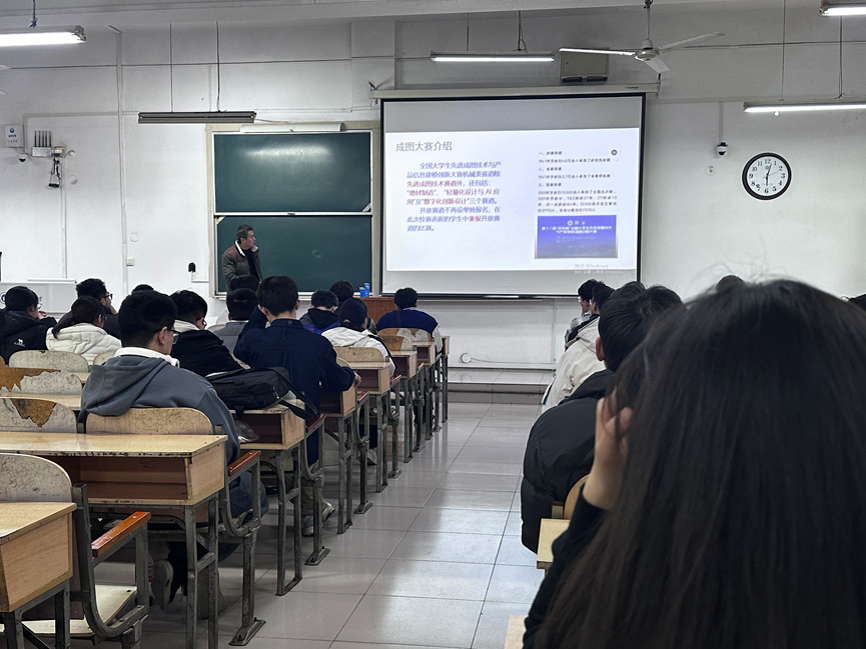 校级成图大赛参赛专项培训活动,全面推进备赛工作。本次培训由学院多位专任教师分工负责选手选拔与备赛团队组建,魏锋老师牵头组织并主讲,约150名参赛选手参加。