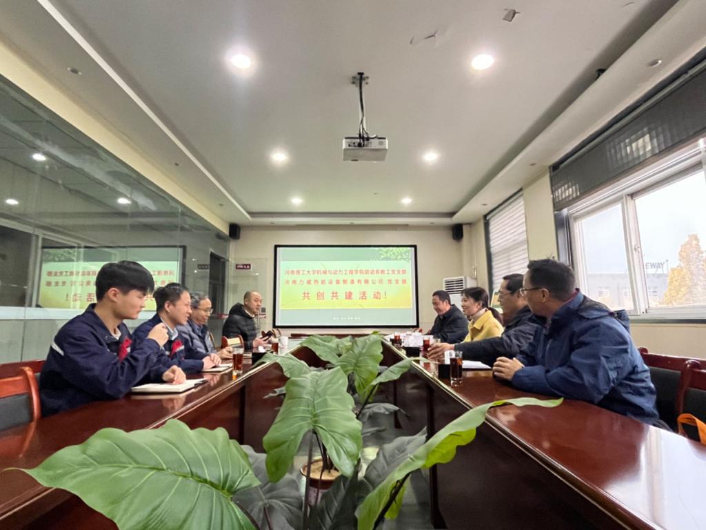 能动系教工党支部与河南力威热能设备制造有限公司党支部开展党建联建活动。能动系党支部书记郝晓茹、河南省非常规能源装备研发中心主任温小萍、能动系党员代表陈国艳、朱崎峰、河南力威热能设备制造有限公司党支部书记贺敏,总经理力威以及企业成员代表10余人参加活动。