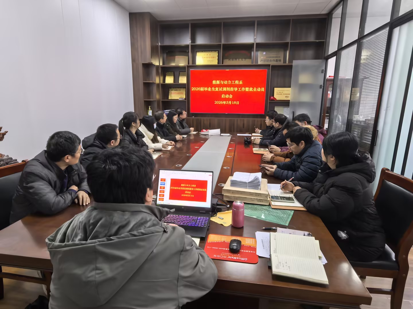 为深入贯彻落实学校关于做好2026届毕业生就业工作的指示精神,切实提升我系毕业生考研录取率和就业质量,3月18日,能源与动力工程系在学院307A会议室召开了研究生复试调剂指导暨就业动员启动会。会议由系部主任梅艳阳主持,系部全体教师参加会议。